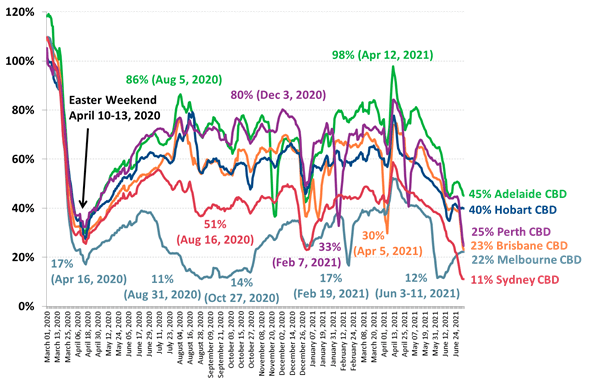 “Over the last month five Australian Capital City CBDs have endured city-wide lockdowns ranging from four days (Brisbane & Perth) up to at least three weeks (the recently extended Sydney lockdown).